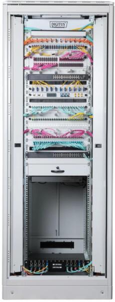 32U network rack, Unique 1609x800x800 mm, color grey (RAL 7035). - Safety class rating IP20 - Complete metal frame front door with safety glass - Lock system with pivot lever on front door (ready...