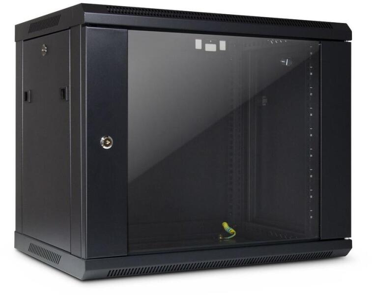 Az 1,25 és 1,50 mm közötti anyagvastagsággal a falra szerelhető állvány akár 30 kg összterhelést is elbír, és megfelel az IP20 védelmi osztálynak is. Az állvány porfestett RAL 9005 színű, és mind az integrált edzett üvegből készült ajtóval, mind az egyedileg eltávolítható oldalsó panelekkel zárható. A fedélben és az alján lévő kábelbemenetek szintén biztosítják a kábelek tiszta elvezetését. Két opcionális 120 mm -es ventilátor, amely megtalálja a helyét a fedélben, támogatja a házat a szellőzés során.