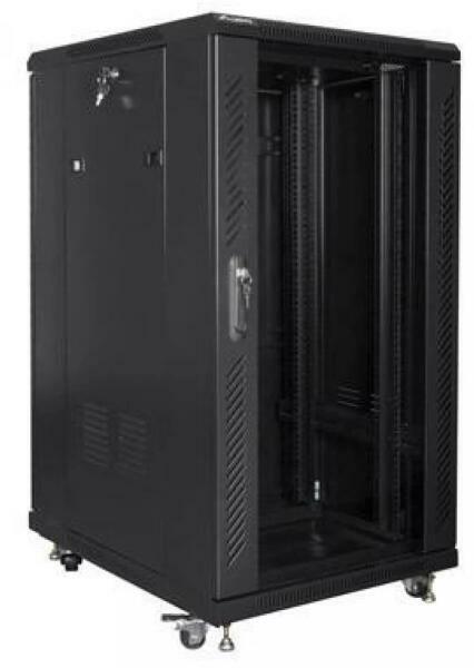 The freestanding Lanberg cabinet FF01-6822-12B is a solution designed to expand networks, installation of cabling and equipment. It can be used in networks, server rooms, small, medium businesses and data centers which need a lot of space in a cabinet for network equipment. It can also work in low voltage systems, such as cable television networks, alarm, fire protection and access control systems, CCTV and IP surveillance. This construction is made of high-grade cold-rolled steel which is characterized by excellent design and high quality of craftsmanship. The cabinet allows full adjustment of the depth of the vertical mounting rails. It is equipped with a front tempered glass door with a lock and the possibility of installing on the right or left side. It has removable side panels and a rear solid steel door with a lock. The fan tray includes 4 fans.