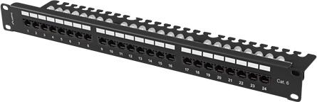 Lanberg Patch panel 24 port 1U 19" CAT. 6 UTP, tehermentesítővel, fekete PPU6-1124-B (PPU6-1124-B)