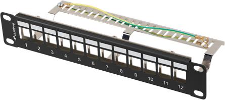 Lanberg Üres patch panel 12 port 1U 10" FTP, árnyékolt, tehermentesítővel, fekete V2 PPKS-9212-B (PPKS-9212-B)