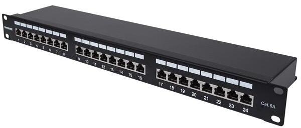 Manhattan 720861 Patch panel - CAT6A FTP árnyékolt patch panel, 24 portos, 1U, Fekete (720861)