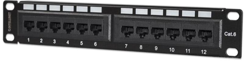 Manhattan Patch panel - CAT6 UTP árnyékolatlan patch panel, 12 portos, 10" 1U, Fekete (720748)