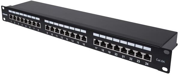 Manhattan Patch panel - CAT6A FTP árnyékolt patch panel, 24 portos, 1U, Fekete PC (720861)