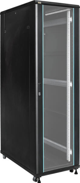 19" 42U 600x1000 álló rack szekrény; lapra szerelt; fekete