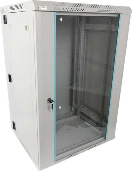19"; 18U 600x550 fali rack szekrény; kiforgatható; lapraszerelt; szürke; könnyített kialakítás