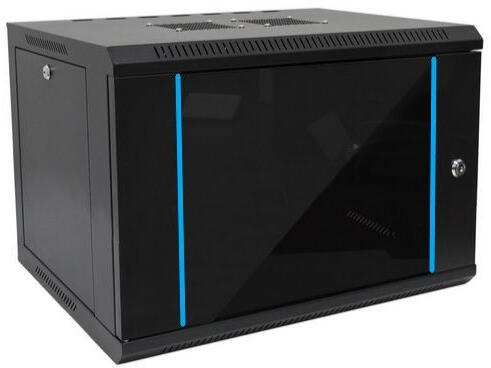 TechSon 600 × 600 mély 6U magas, fali 19"-os rackszekrény, üveg ajtó, fekete